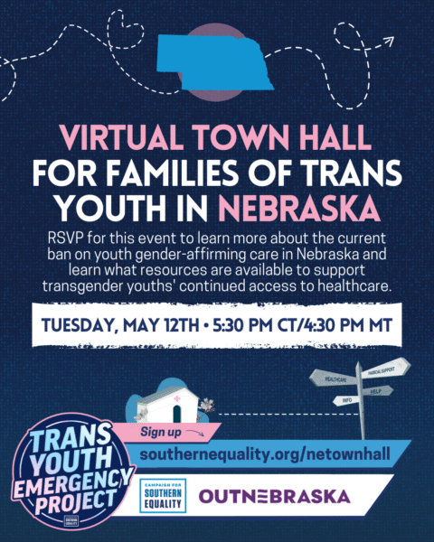 This event will be hosted by OutNebraska and the Campaign for Southern Equality’s Trans Youth Emergency Project.