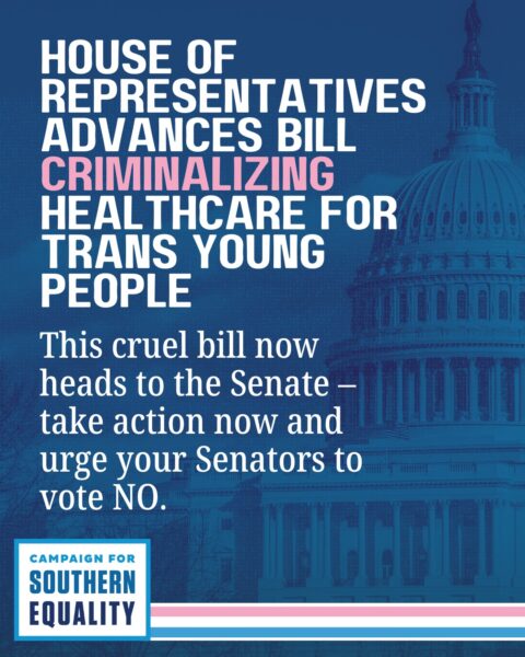 The bill now heads to the U.S. Senate, where advocates, families, and the Campaign for Southern Equality will work tirelessly to defeat it.